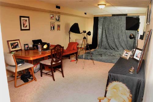 The photo to the right is of our old studio at our previous location, but helps to illustrate all the equipment we can bring.